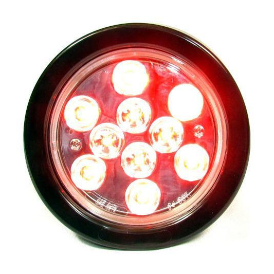 4" Round Red LED Light with Clear Lens - 10 LEDs - 24 Volts - Tail/Turn Light