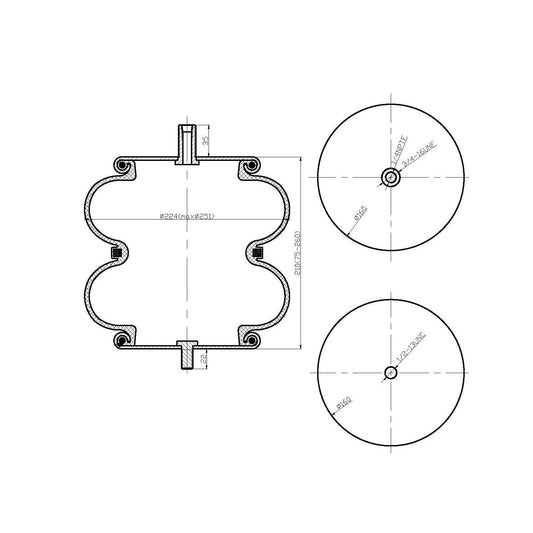 Fortpro Double Convoluted Air Spring Replaces 6897, 2B9-229 | F245644