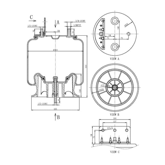 Fortpro Double Convoluted Air Spring Replaces 7136, 554798C1 | F245646
