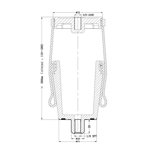 Fortpro Air Spring Replaces 8852, 1R12-568 | F245596