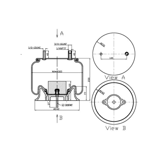 Fortpro Air Spring Replaces 8204, 1R12-508 | F245590