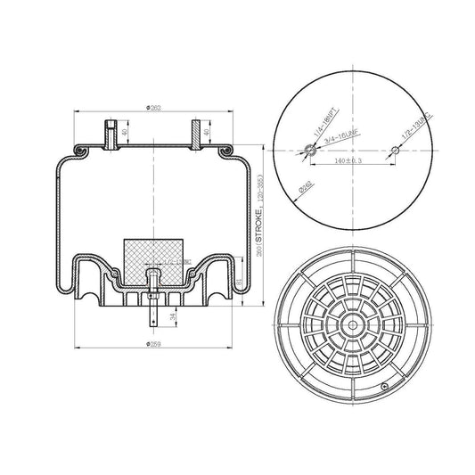 Fortpro Air Spring Replaces 9466, 1R12-365 for Mack Trucks | F245582