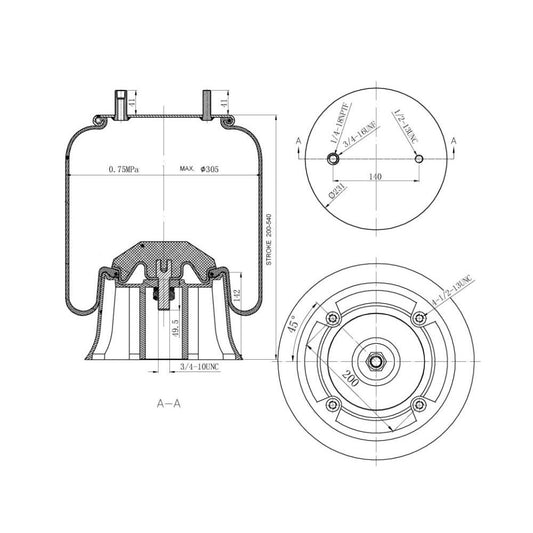 Fortpro Air Spring Replaces 9375,1R12-404 for Mack Trucks | F245581